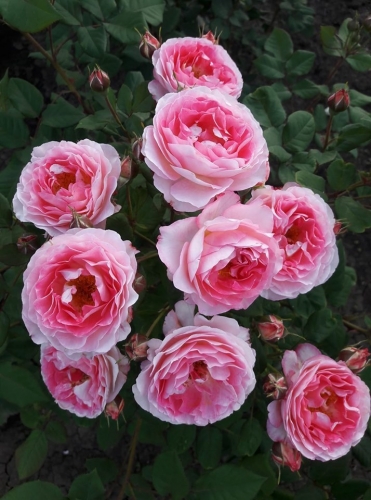 Эта роза названа в честь знаменитой французской писательницы, баронессы де Сталь. Цветки старинной формы, густомахровые, квартированные, розовые, обратная сторона лепестков белая. Аромат сильный. Листва матовая, тёмно-зелёная. Кусты высотой 100 см, шириной 60 см. Цветение обильное, как у флорибунды, повторное, с мая по октябрь. Рекомендуется для одиночных и групповых посадок.