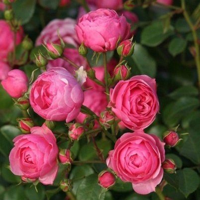 Сильнорослая клумбовая роза, обильноцветущая, очень устойчивая к заболеваниям, с цветками, напоминающими помпоны в стиле старинных роз. Цветки темно-розовые, шаровидные, в кистях по 5-7 шт. Листва темно-зеленая, густая, слегка блестящая. Куст прямостоячий, ветвистый, до 80 см высотой.