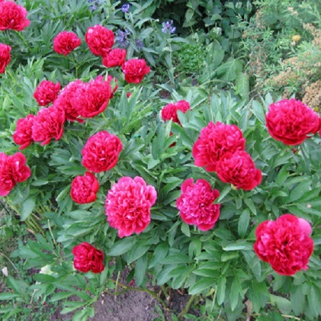 Махровый бомбовидный – шаровидный. Цветок блестящий, тёмно-вишнёвый, диаметром 14-15 см, не выгорает. Куст сильный, компактный, высотой 70-80 см. Стебли толстые, иногда искривляются. Очень давно и хорошо известный, и столь же популярный сегодня. Очень раннего срока цветения.