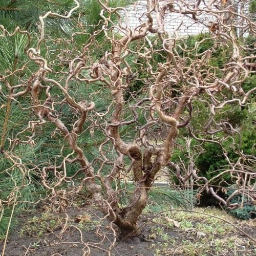 Лещина обыкновенная Конторта, научное название которой Corylus avellana 'Konortka', является сортом лещины, принадлежащей к семейству Betulaceae. Этот сорт отличается своими высокими декоративными качествами и характеристиками, делая его популярным выбором для ландшафтного озеленения и садоводства. Лещина обыкновенная Конторта является кустарником среднего размера, достигающим высоты до 3-4 метров. Он имеет широкую пирамидальную форму и плотную ветвистую структуру. Кора стволов и ветвей сорта Конторта имеет серо-коричневый оттенок, что придает ему элегантный и приятный внешний вид. Листья лещины обыкновенной Конторта имеют округлую форму и зубчатые края. Они имеют насыщенно-зеленый цвет, который сохраняется в течение всего сезона. Листья обладают глянцевой поверхностью, что придает им дополнительное очарование. Цветение лещины обыкновенной Конторта происходит в начале весны. Ее мужские цветки представлены в виде длинных висячих кистей, состоящих из желтых метелок. Женские цветки представлены небольшими красноватыми прицветниками, расположенными на концах побегов. Цветение создает красивый контраст и приносит весеннюю красоту в сад. Плоды лещины обыкновенной Конторта представлены парами орехов, заключенных в плотные, зеленовато-коричневые обертки. Орехи являются съедобными и богатыми питательными веществами.