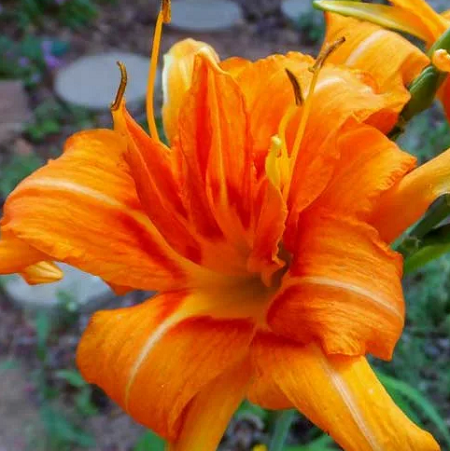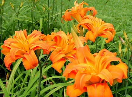 Удивительный махровый лилейник, обладающий лепестками невероятной формы. Цветки сочного оранжевого цвета, в диаметре 10 см. Высота растения 60-80 см. Пик декоративности этого сорта приходится на вторую половину лета, цветение продолжается до сентября.