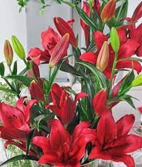Лилия Breakout, ЛА - гибрид. Цветок алый, лепестки плотные. Диаметр цветка 20 см, высота растения 130 см. Время цветения июль-август.