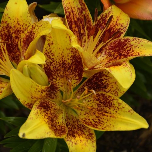 Это очень пышный сорт, который дает до 20 бутонов на одном стебле через 2-3 года после посадки. Период цветения сорта - июль-август. Цветет очень долго, до 4 недель, а также долго сохраняется в срезанном виде, не темнея и не осыпаясь. Цветы роскошные, яркого желто-оранжевого цвета, со светло-коричневым крапом, их диаметр составляет в среднем 20 см.
