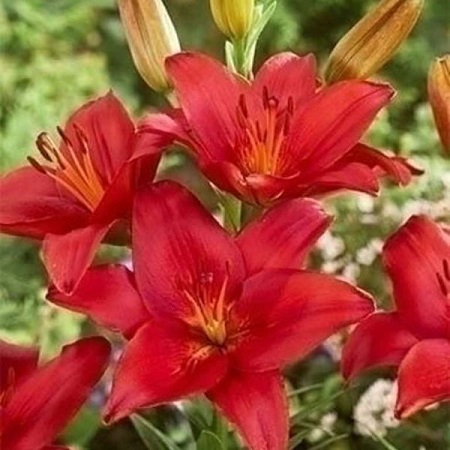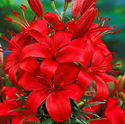 Ярко-красная лилия Prunotto вряд ли останется незамеченной в Вашем саду. Ее лепестки равномерно окрашены в цвет молодого вина, открываются на 12-16 см в диаметре, имеют плотный глянцевый вид, в длину обычно достигают 10 см. Сам цветок в высоту вырастает до 110 см, имеет один сильный стебель, на котором одновременно распускаются от 5 цветов и больше. Луковицы лилий Prunotto сажают в нейтральные или слабокислые почвы сразу после окончания заморозков весной или уже после периода их цветения, в сентябре. Выращивать их очень просто, они неприхотливы, не требуют за собой особого ухода, при этом обильно цветут все лето. Отсутствие яркого тяжелого аромата, делает их идеальными цветами для всех любителей лилий.