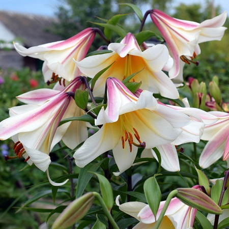 Особенности выращивания и ухода:Предпочитают рыхлые слабокислые плодородные почвы. Лилии, как и все луковичные растения, не переносят внесения извести и свежей органики. В местах, где растут лилии, не должна застаиваться вода. Лилии восточные гибриды предпочитают теплые , солнечные места или легкое затенение. Место посадки восточных лилий должно быть защищено от ветра — так как многие сорта высокорослые и с очень крупными цветками.