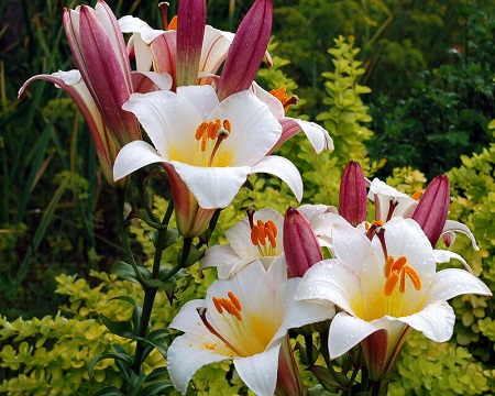 Особенности выращивания и ухода:Предпочитают рыхлые слабокислые плодородные почвы. Лилии, как и все луковичные растения, не переносят внесения извести и свежей органики. В местах, где растут лилии, не должна застаиваться вода. Лилии восточные гибриды предпочитают теплые , солнечные места или легкое затенение. Место посадки восточных лилий должно быть защищено от ветра — так как многие сорта высокорослые и с очень крупными цветками.