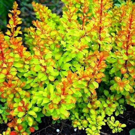 Новый сорт барбариса. Высота 0,5 м, ширина кроны от 0,15 до 0,5 м. Форма куста округлая, близкая к шаровидной. Листья мелкие, с изменяющейся окраской, весной нежно-розовые с красной каймой, летом имеют ярко желтую окраску, осенью становятся оранжевыми. Побеги раскидистые с плотно расположенными на них листьями. Цветки небольшие, мало декоративные.