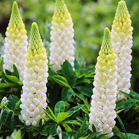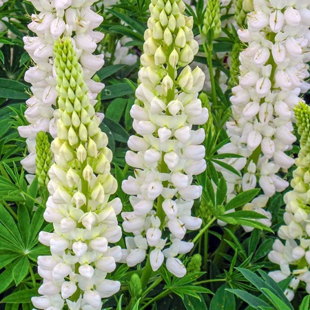 Прекрасный белоснежный сорт. Соцветия длинные, снежно-белые на прочных высоких цветоносах. Листья пальчатые. Стебли крепкие. Хорошо разрастается в ширину. Неприхотлив. Высота взрослого растения 90-100 см. Периуд цветения май-июль. Название латинское: Lupinus polyphyllus Noblemaiden Особенности выращивания и ухода: Люпины нетребовательны к почвам, но при посадке рекомендуется вносить торф. Предпочитают солнечные места. Растут на любых почвах, но лучшими для них считают слабощелочные, слабокислые и нейтральные виды почвы Применение: Соцветия длинные, плотные метелки с потрясающе яркими окрасками Интересное растение для контейнеров Великолепно подходит для клумб, бордюров, вазонов
