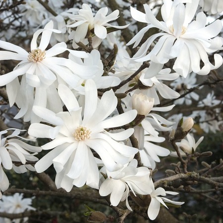 Изящный листопадный кустарник с обильным ранним цветением, когда белоснежные цветки полностью покрывают ветви, создавая ощущение снегопада в саду. Один из самых зимостойких сортов магнолий, отличающийся изумительной красотой и надёжностью в условиях средней полосы.