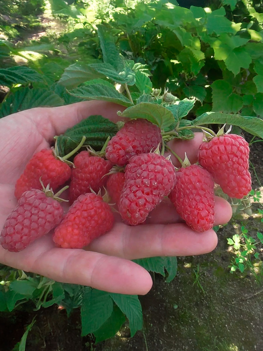 Крупноплодный среднеранний сорт,высота лозы у этой малины до 1,8 м. Сорт обладает очень толстыми стеблями,Очень крупными ягодами тускло-красного цвета, вес одной малинки 7−9 г, ягоды имеют приятный аромат и вкус. Купить саженцы Малины.