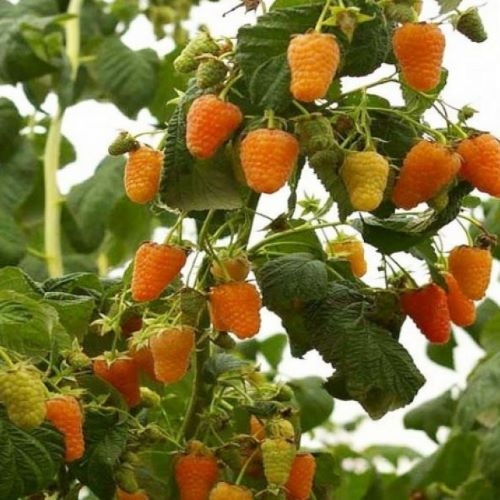 Мощный, полураскидистый куст ремонтантного желтоплодного сорта обладает высотой побегов в 160-180 см. Ягоды имеют вытянутую форму, крупный размер и массу 6-8 грамм. Они сочные, плотные и отлично транспортируются, сохраняя товарный вид до 2-3 суток. Цветение начинается с середины августа и продолжается до первых заморозков. Вкус отличается своей мягкостью и нежностью. Ягода имеет сладкий, но не приторный вкус, с легким оттенком кислинки. При первом укусе чувствуется сочность и мягкость, которая затем переходит в приятное кисло-сладкое послевкусие. Также имеет тонкий аромат, напоминающий смесь персика и абрикоса, что делает ее особенно привлекательной для любителей необычных вкусов. Данный сорт устойчив к нападению вредителей и поражению болезнями. Солнечное место. Суглинки и супесчаная почва. Место защищенное от постоянных ветров. Рекомендуется дренаж. Полив 1 – 2 раза в неделю. Весной производить санитарную обрезку. Подкормку производить азотными удобрениями и осенью фосфорно калийными удобрениями.