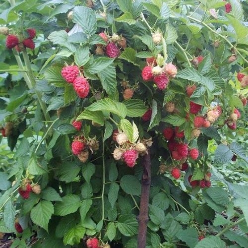 На самом деле "малиновое дерево" это нечто иное, как мощный куст приличной высоты с толстыми побегами, покрытыми древесиной, или по другому, штамбовая малина. Штамбовая малина Крепыш- крупноплодный среднеранний сорт, его созревание начинается со второй декады июня и длится до двадцатых чисел июля. ККуст высотой до 2,5 метров, не нуждающийся в подвязывании благодаря толстым стеблям, диаметр лозы «Крепыша» достигает 1,5–2 см. На стеблях очень маленькие междоузлия, что гарантирует появление большого количества боковых веточек, на которых и будет сформирован основной урожай. На малиновых ветках абсолютно отсутствуют колючки, кожица на стволиках растений гладкая. Облиственность куста начинается в 30–40 см от поверхности грунта, листья тёмно-зелёные, грубые, с сильно гофрированной листовой пластинкой. Высота лозы у этой малины до 1,8 м. Сорт обладает очень толстыми стеблями, Кустики этого сорта усыпаны очень крупными ягодами тускло-красного цвета, вес одной малинки 7−9 г, ягода имеет форму широкого конуса, похожа на круглую шапочку, которую можно надеть на большой палец, зрелые ягоды имеют приятный аромат и вкус. Их употребляют в свежем виде, а также готовят варенье, джемы, топпинги, ее добавляют в чай, в выпечку и в кондитерские изделия. Урожайность высокая, выше аналога Тарусы, до 4 кг с куста при грамотной агротехнике. Дополнительные комментарии: Малиновое дерево – это скорее даже не сорт, а один из методов выращивания. Его суть заключается в следующем – в кустах прищипывается верхушка молодых побегов, что дает возможность пробудиться боковым побегам. Таких побегов может быть более 10 шт. К концу осени такой вот куст уже будет походить на маленькое аккуратное деревцо и на следующий сезон даст большой урожай.