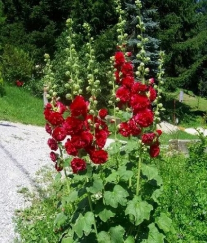 Название латинское: Malva rosea Chaters Double Red Особенности выращивания и ухода: требуют солнечный свет и богатую минералами почву. Поливать следует умеренно, растение не любит переизбытка влажности. Применение: Используется в качестве украшения возле забора или лавочек, беседок. Красиво смотрится в качестве фона для лилейников.