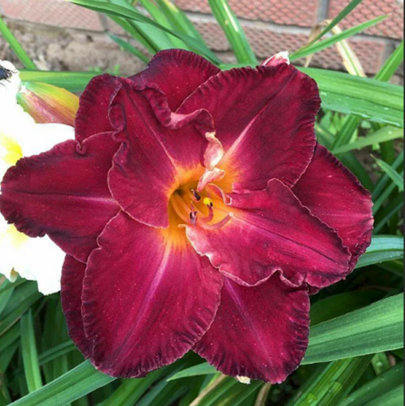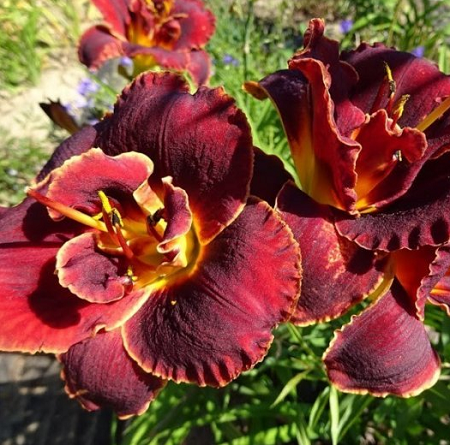 Среднерослый лилейник высотой до 60 см, образует крупные, мясистые, слегка гофрированные махровые цветы красно-бордовые с лимонным горлом, до 14 см диаметром. На возвышающихся цветоносах распускается одновременно 1-3 цветка. Зацветает в июле на 35-45 дней, преобразуя все вокруг своими необычными цветами.