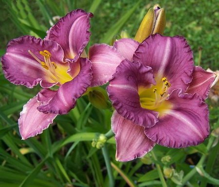 Обильно цветущий лилейник высотой до 65 см. Цветы голубовато-пурпурные с желтым горлом, края лепестков гофрированные, диаметр цветка 15 см. Цветоносы сильно разветвленные, цветы высоко приподняты над листвой.Период цветения июль-август