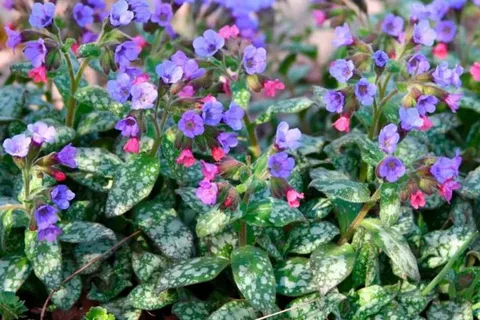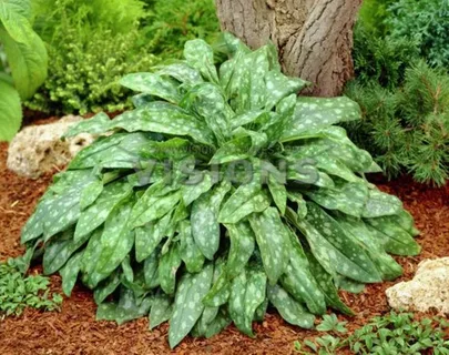 Высота растения 30-45 см. Лист вечнозеленый, большой, широкий, овальный, матово-зеленый, с бросающимися в глаза серебристыми пятнами. Летние листочки появляются после цветения. Соцветия карминовые, в конце цветения фиолетовые, воронковидные, много соцветий на конце прямого, покрытого листьями стебля. Цветет в апреле-мае. Морозостойкость до -34 градусов. Название латинское: Pulmonaria hybride Smoky Blue