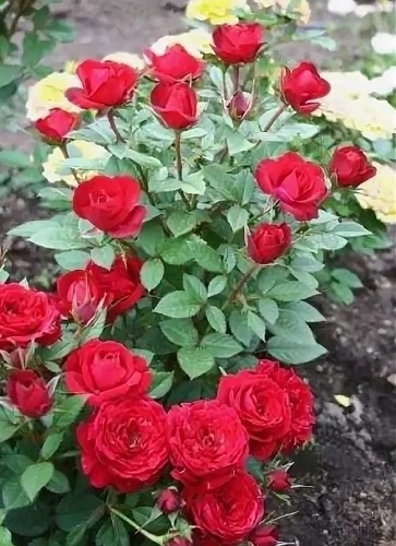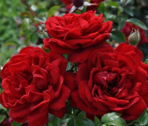 Цветки диаметром 3-4 см, махровые (17-25 лепестков), розеточной формы, тёмно-красные. Листва тёмно-зелёная, устойчивая к болезням. Куст высотой 25-30 см, раскидистый.
