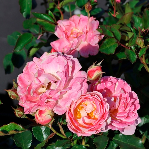 Высота растения 30-40 см Аромат слабый Размер цветка 3-5 см Цветок нежно-розовый Цветение-повторноцветущая Миниатюрная роза Flirt 2011 отличается изящными цветками нежного светло-розового оттенка с кремовыми нюансами. По мере отцветания на лепестках появляется легкий румянец, добавляющий цветкам особую прелесть. Цветки собраны в аккуратные соцветия и украшают куст на протяжении всего сезона. В полном роспуске цветки раскрывают серединку с яркими желтыми тычинками, что придает им дополнительную выразительность. Несмотря на отсутствие аромата, роза привлекает внимание своей декоративностью и обильным цветением. Куст этой розы компактный, с густой глянцевой листвой, которая подчеркивает красоту цветков. Благодаря своим небольшим размерам и изысканному внешнему виду, роза Flirt 2011 идеально подходит для создания бордюров, украшения переднего плана цветников, а также для выращивания в контейнерах на балконах и террасах. Ее неприхотливость и продолжительное цветение делают ее отличным выбором для садоводов, ценящих элегантность и утонченность.