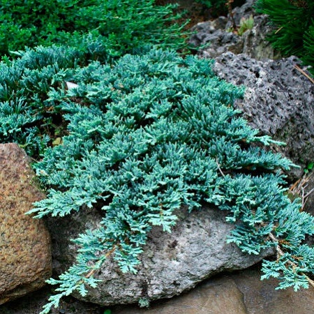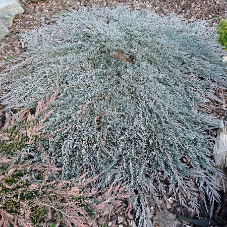 Вечнозеленый кустарник с очень гибкими и длинными стелящимися побегами, образующими голубовато-зеленый плотный ковер 4-5 см. высотой.Чешуйчатая, голубовато-зеленая, зимой приобретает фиолетово-сливовый оттенок. Высота 0,1-0,2 м, ширина 1,5-2 м.