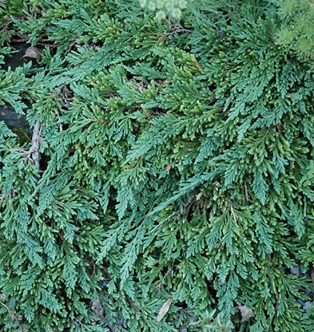 Является одним из самых плоских среди горизонтальных экземпляров. В высоту он достигает не более 40 см при диаметре 1,5 метра. Стелющаяся крона является очень плотной, ползучие густые побеги сорнякам не оставляют шансов на прорастание.