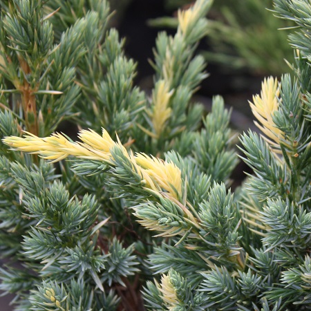 Хвойный вечнозеленый кустарник, сорт медленнорастущий, годовой прирост около 10 см. Хвоя серебристо-голубоватая. Молодой прирост с неравномерными кремово-жёлтыми пятнами.. После 10 лет достигает 1 м высоты.
