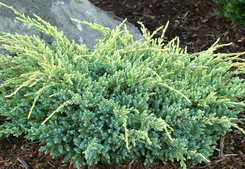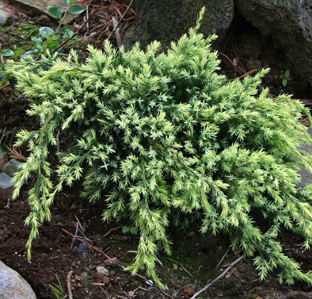 Это замечательное растение, декоративное круглый год. Крона раскидистая вырастает до 0,8 м в высоту и 1,5 м в диаметре. Хвоя зеленая с белыми проблесками, не меняет цвета зимой. Побеги текущего года имеют золотистый оттенок. Плоды – мелкие темно-синие с сизым налетом шишковидный. Благодаря оригинальной окраске пользуется популярностью у коллекционеров садовых редкостей. Любимец начинающих садоводов, завоевывает симпатию с первого взгляда аккуратной формой и насыщенным, как-бы переливающимся всеми оттенками зеленого, цветом. Хорошо очищает воздух от болезнетворных бактерий.
