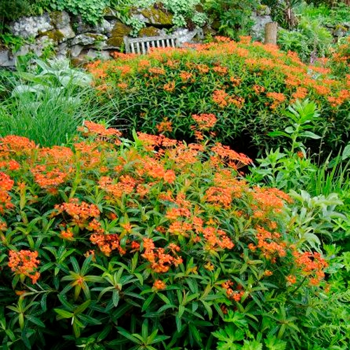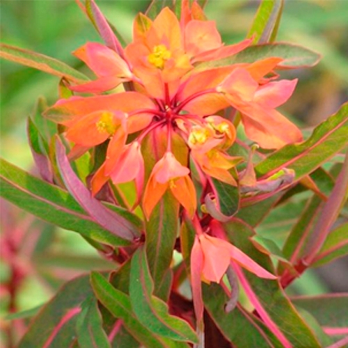 Редкий сорт молочая, который выделяется среди других сортов благодаря своей яркой окраске прицветников и листьев. Эта окраска не только привлекает внимание, но и меняется в течение лета, создавая интересный визуальный эффект.