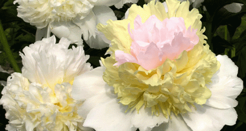 Изумительный сорт пиона травянистого, выведенный в США в 1968 году. Высота взрослого растения: 0,8 - 1,1 м., при аналогичной ширине. Листья крупные, сложные, дваждыперистые, насыщенно-зелёные или тёмно-зелёные, немного кожистые, чуть блестящие. Цветки: диаметром 10 - 18 см., махровые, с лёгким, сладковатым ароматом. Внешние лепестки цветков - белые, центральные - жёлто-розовые. Цветки располагаются на крепких, прямостоячих цветоносах. Период цветения: июнь - начало июля.