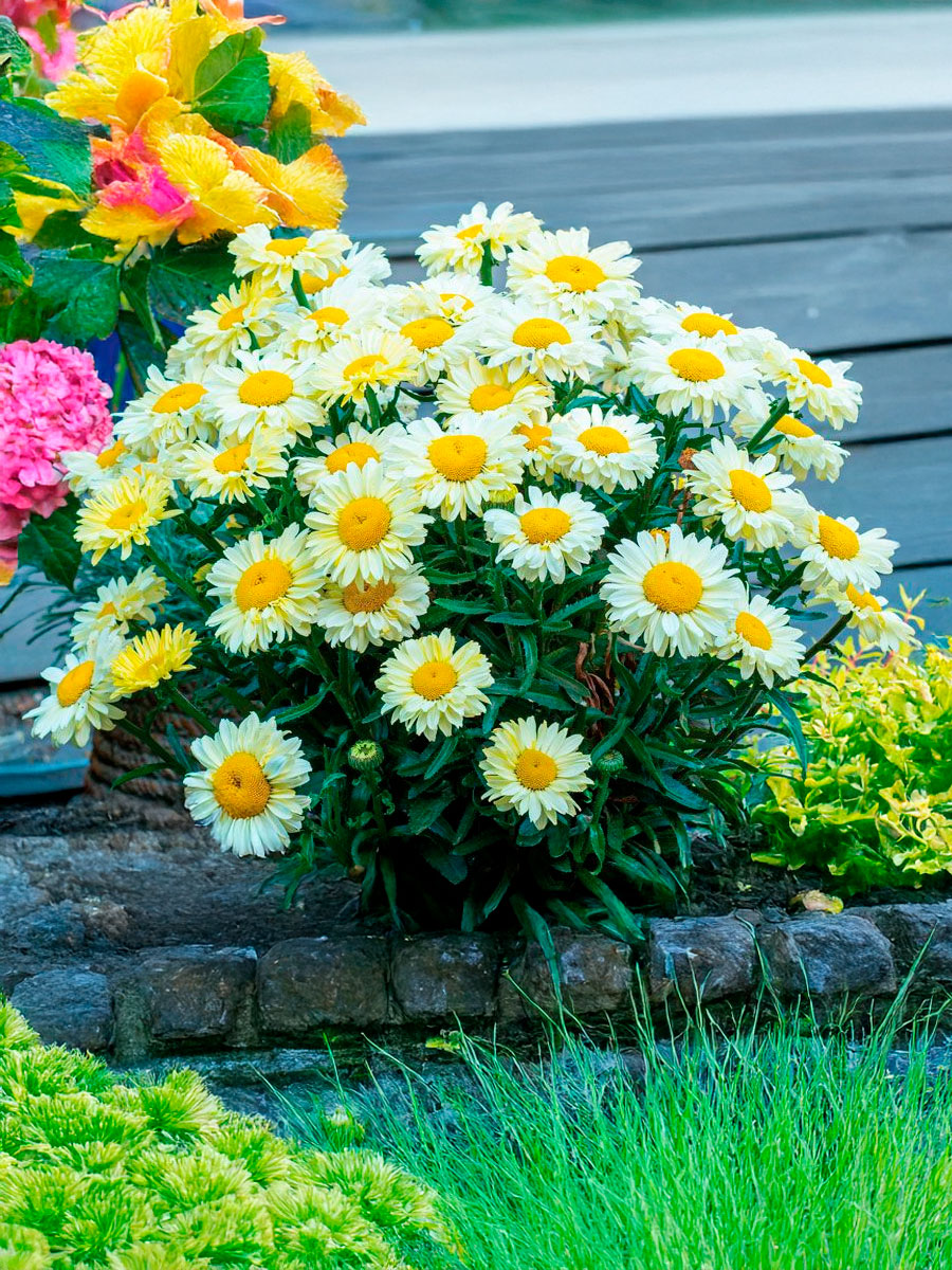 Нивяник (Leucanthemum) — популярный многолетний цветок, который многие знают под названием «садовая ромашка». Его крупные белые лепестки с яркой жёлтой серединкой создают солнечное настроение и прекрасно подходят для оформления клумб, миксбордеров и садов в природном стиле.