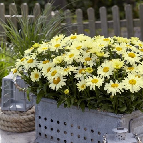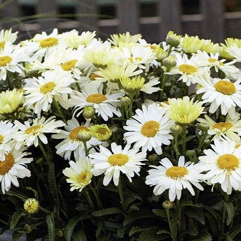 Многолетний неприхотливый цветок радует глаз золотистыми глазками и крупными соцветиями. Высота растения составляет около 30 см, а ширина — 20 см. Темно-зелёные продолговатые листья контрастно смотрятся на фоне крупных белых или бледно-жёлтых цветов, достигающих в диаметре 10 см. Цветение ромашки продолжительное - с начала июля и до первых заморозков.