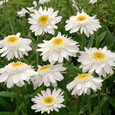Сорт низкорослый, высота растения 20-40 см. Лепестки белоснежные, расположены в несколько рядов вокруг выпуклого жёлтого центра. Цветки диаметром 5-7 см. Обильное цветение в июне-июле.