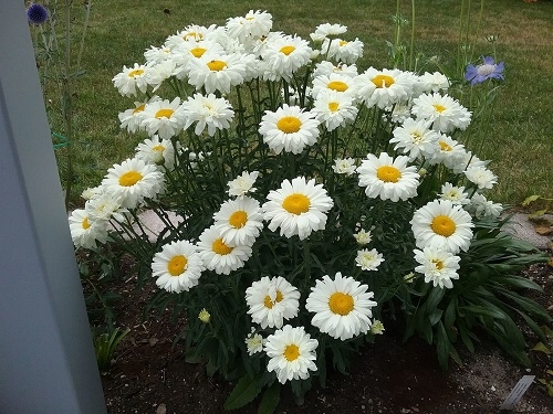 Многолетник с коротким, наземным, корневищем и множеством ветвистых стеблей высотой 60-70 см. Цветы полумахровые диаметром 8-10 см, белые с желтым центром. Цветет с июля до морозов.