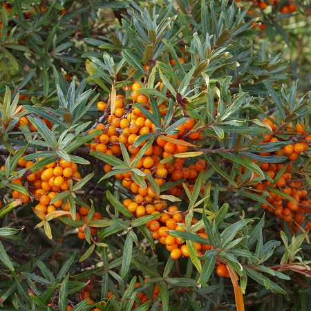 Новый шведский сорт облепихи. Кустарник или небольшое деревце до 3 м высотой. Листья узкие, ланцетные, серо – зелёные. Цветение начинается в мае, еще до развития листьев, цветки невзрачные, двудольные. Плодоносит в августе-сентябре крупными блестящими оранжевыми ягодами (0,5-0,7 см), богатыми витамином С. Сохраняются на ветвях вплоть до весны, что весьма декоративно. Сорт плодоносит очень обильно и ежегодно. Необходимо учитывать что растение самобесплодное, необходим мужской опылитель для завязывания плодов. Латинское название: Hippophae rhamnoides "Julia" Особенности выращивания и ухода: Лучше всего растёт на солнечных местах; выносит полутень.предпочитает проницаемую, умеренно увлажнённую, плодородную почву, но при необходимости может расти и на более бедных почвах. Также растение требует обильного полива, но при этом не переносит застоя влаги в корневой системе. Использование: Рекомендуется для одиночных или групповых посадок в садах, огородах, парках. Может использоваться для создания живой изгороди.