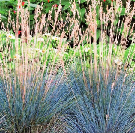 Овсяница сизая декоративный многолетний злак, при росте образующий пышные, но компактные кусты. Они формируются узкими листьями темно-зеленого цвета, которые осенью меняют свою окраску и становятся оранжево-медными в верхней части. Соцветия высокие, до 70 см., метельчатые, состоят из мелких невзрачных цветочков бежево-коричневого оттенка. Высота куста без соцветий — до 30 см. Овсяница Санрайз великолепно смотрится в каменистых садиках, миксбордерах, в групповых посадках, применяется для декорирования зон у водоемов. Изящный, воздушный злак создаст красивый фон для роз, пионов, гераней. Нежно смотрятся сочетания овсяницы с маками, ромашками, васильками, родиолами, фиалками, сальвиями.