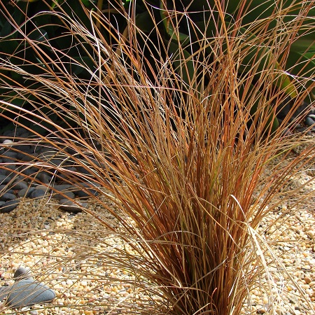 Декоративная новозеландская осока высотой до 60 см., листья нереальной коричнево-медной окраски, 1 мм шириной, жесткие, поникающие. Соцветие колосок. Цветки зелёные. Цветение в мае-июне. Вечно коричневую листву ни в коем случае не срезают.