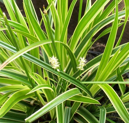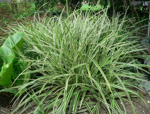 Декоративный злак до 30 см высотой, густодернистые, стебли нитевидные. Листья широкие, дуговидные, тёмно-зелёные, по краям с широкой кремово-белой полосой. Соцветие колосок. Листву ни в коем случае не срезают.