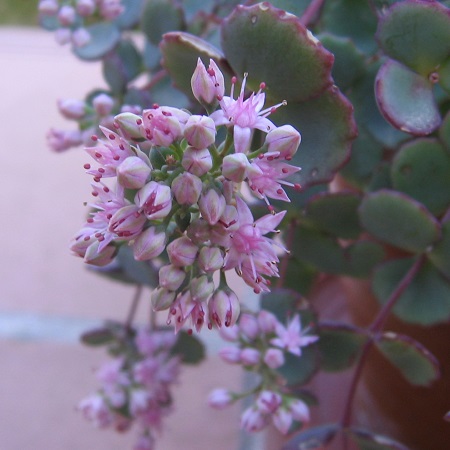 Многолетнее растение высотой 10 см, с ползучими, длинными корневищами. Стебли стелющиеся или приподнимающиеся, короче цветоносных, с более скученными листьями. Листочки образуют плотные заросли сизо-голубого цвета. Цветет ранней осенью, цветки розового оттенка, мелкие, образуют густые соцветия. Название латинское: Sedum Siebolbii Bright Pink
