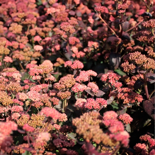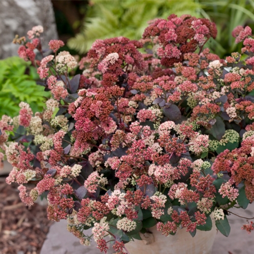 Очиток (седум) Рейнбоу Ксенокс — это травянистое низкорослое растение из семейства толстянковых. Его высота достигает 40 см, оно имеет мощные и коренастые стебли. Листья у него тёмные, а цветы могут быть разных оттенков: от кремового до тёмно-бордового. Цветение обильное и продолжительное, длится с августа по октябрь.