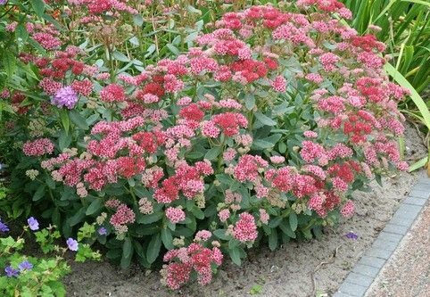 Многолетник высотой 40-50 см. Листья крупные, мясистые, светло-зеленого цвета. Мелкие цветки темно-розового цвета собраны в большие щитковидные соцветия на концах побегов. Цветение очень продолжительное и обильное. Время цветения: август-сентябрь.