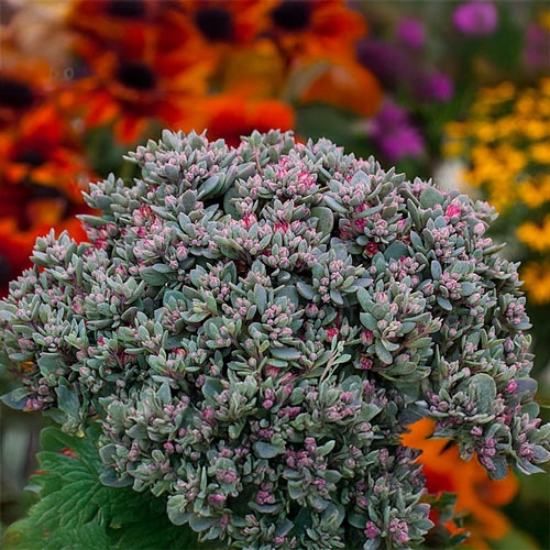 Многолетний суккулентный почвопокровник высотой 15–20 см. Листья мясистые, сизо-голубые с зубчатым краем, образуют плотные розетки. Цветки мелкие, звездчатые, ярко-розовые, собраны в щитковидные соцветия до 10 см в диаметре; цветет обильно с августа по октябрь.