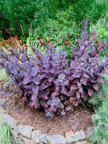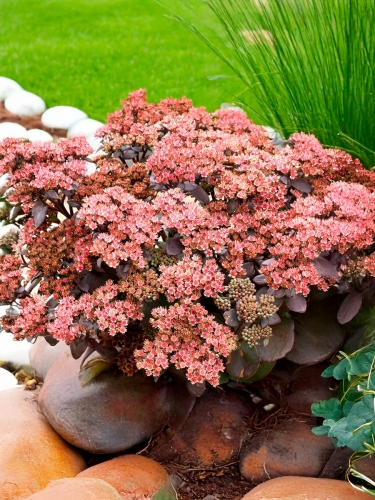 Эффектный сорт с уникальной голубовато-сизой листвой и яркими розово-пурпурными соцветиями. Очиток гибридный ‘Blue Pearl’ ценится за насыщенную окраску, позднее цветение и высокую устойчивость к засухе. Формирует плотный компактный куст с прямыми прочными побегами. Идеален для солнечных участков и каменистых садов.