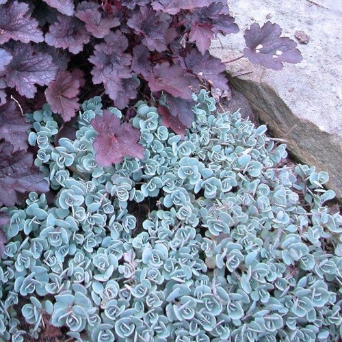 Многолетник низкий с многочисленными красно-коричневыми побегами, длинной до 20-25 см, стелющимися, листья яйцевидные, цельнокрайные с голубовато-серым налётом и пурпурными краями. Соцветия вначале пурпурные, позже карминово-красные,цветет в августе-сентябре.