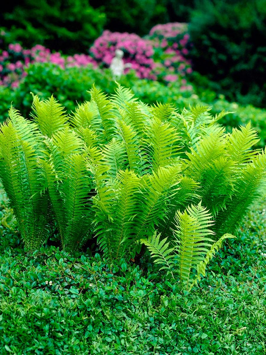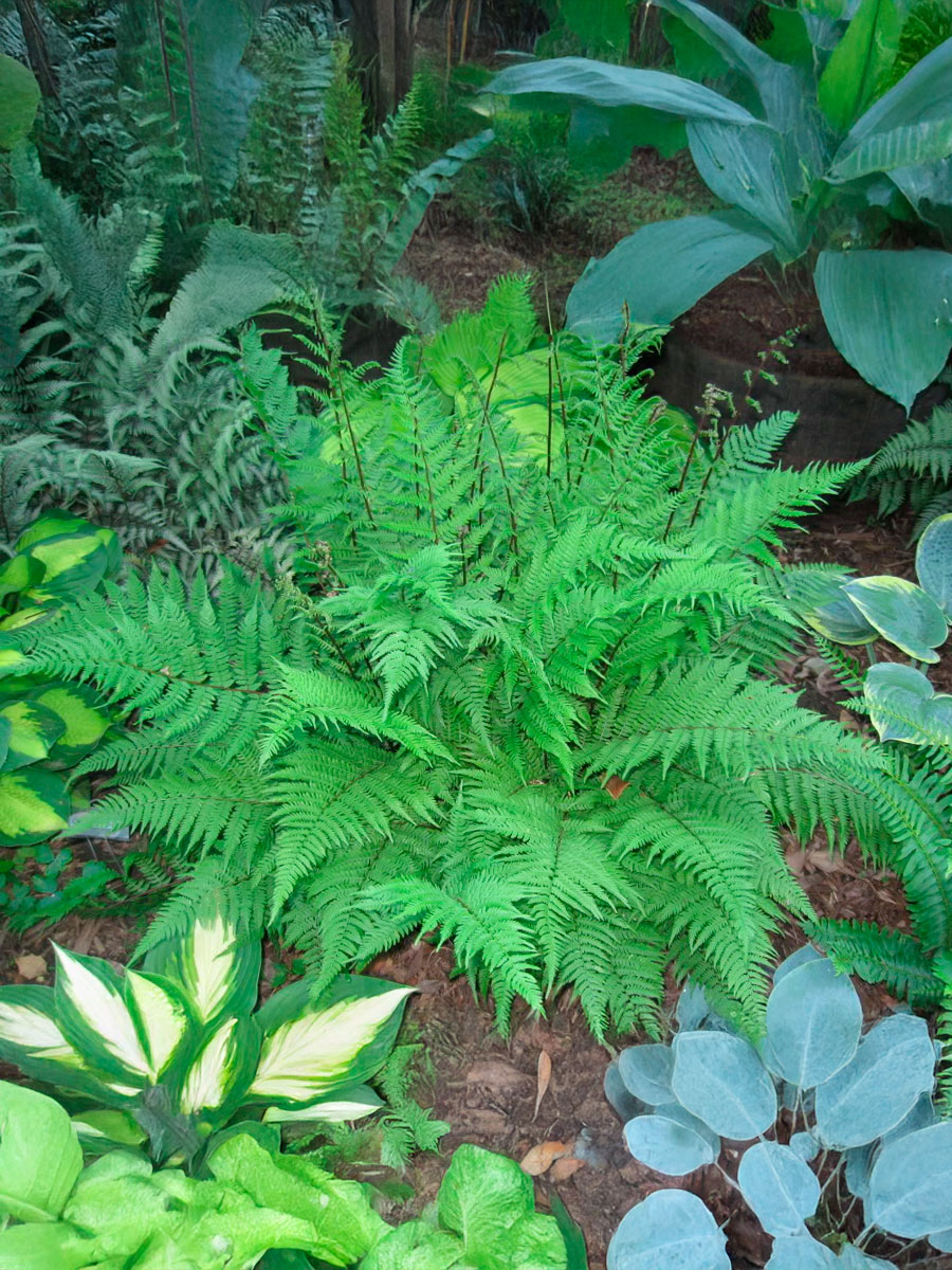 Папоротник (Щитовник) — изящный многолетник, придающий саду атмосферу уюта и загадочности. Благодаря резным ажурным вайям растение прекрасно смотрится в теневых уголках сада, у водоёмов, в лесных композициях и в миксбордерах. Щитовники неприхотливы, быстро разрастаются и создают живописные зелёные заросли.