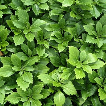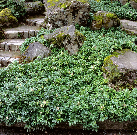 Очень ценное вечнозеленое почвопокровное растение. Высота до 0,5 м. Побеги и листья темно-зеленые, блестящие Цветки довольно невзрачные, собраны в белые колосовидные соцветия в верхней части побегов, цветение в апреле – мае.