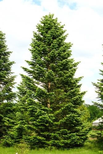 Вечнозелёное дерево  с очень симметричной красивой кроной, высота к 10 лет выращивания  около 2 м, к 30-ти годам высота 10 м. Хвоя сверху тёмно-зелёная глянцевая, снизу с двумя голубовато-белыми полосками. Шишки очень красивые, темно-коричневые, до 20 см длины и около 5 см в диаметре, располагаются на вертикально, словно свечи.