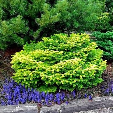 Это карликовый сорт пихты корейской. Форма- плотная, сферическая, немного сплющенная, высота 0,3м и ширина 0,4м. Хвоя короткая, мягкая, блестящая, с нижней стороны серебристая. Молодые приросты- сочного светло-зеленого цвета.