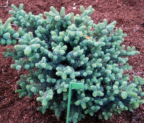 Очаровательная корейская пихта, форма карликовая, растёт медленно, к 10-ти годам высота 80-100 см, диаметр кроны 150 см. У молодого растения крона может быть - округлой, подушковидной, ширококонусовидной или немного ассиметричной, у взрослого растения крона имеет ширококонусовидную или конусовидную форму. Хвоя густая, сине-зелёная, снизу голубовато-белёсая. Молодой весенний прирост светло-зелёный, контрастирует со старой хвоей.