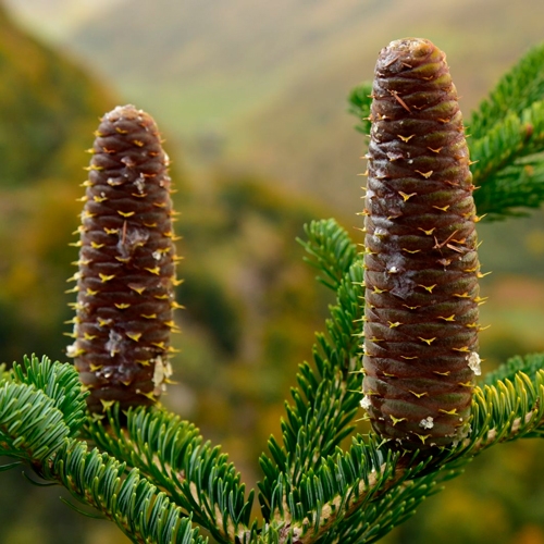 Вечнозелёное хвойное дерево с узкоконической кроной, достигающее  15-25 м в культуре. Хвоя плоская, мягкая, 2-3 см длиной, тёмно-зелёная сверху с двумя белыми полосками снизу, обладает приятным хвойным ароматом. Цветки невзрачные; шишки цилиндрические, 10-20 см длиной, растут вертикально вверх, зелёные (молодые), созревают до коричневых. Цветение происходит весной.