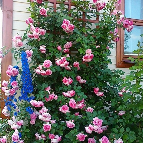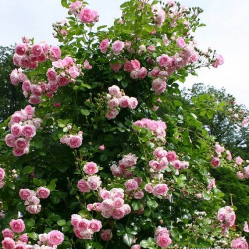 Обильноцветущая плетистая роза. Цветки сиренево-розовые, чашевидные, в кистях по 10-15 шт, очень душистые, со сладким ароматом. Куст ветвистый, хорошо разветвленный, до 1,8 м высотой. Листва средных размеров, густая, слегка блестящая.