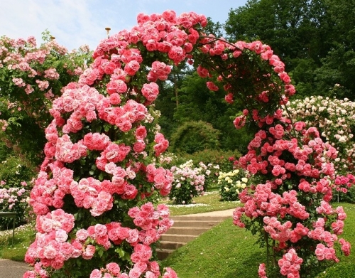 Популярность этого ветвистого клаймбера постоянно росла с того времени, как сорт был представлен в 1977 г. Цветки Rosarium Uetersen в то время сочли слишком старомодными, но сейчас его качества признали, и сорт выращивают во всем мире. Цветки крупные, квартированные, густомахровые. Кисти также большие - растение в полном цвету, роняющее темно-розовые волнистые лепестки, представляет собой восхитительное зрелище. Оборотная сторона лепестков ближе к серебристо-розовому, и цветки немного выгорают с возрастом, что подчеркивает красоту новых цветков и кистей в целом. Первое цветение очень обильное, затем цветы появляются с перерывами. Они очень устойчивы к дождям и ветру. Листва обильная, крупная, блестящая, здоровая. Сорт можно выращивать как клаймбер, или как шраб.